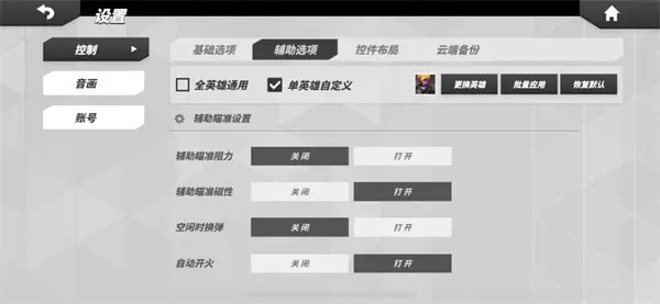 可以根据对方选择的英雄,选择是否要打开【辅助瞄准阻力】: