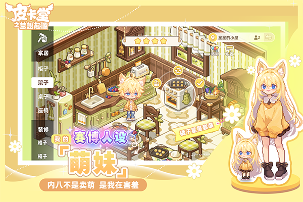 1、像素q版动画设计风格,画面感趣味性十足。 2、完美的商业模拟玩法,玩家可以在游戏中建造自己的家园。 3、多人联机社交,玩家可以互相交朋友,一起建造庄园。 4、游戏玩法丰富,玩家可以装备自己的家园,建造自己的农场。皮卡堂之梦想起源官服攻略