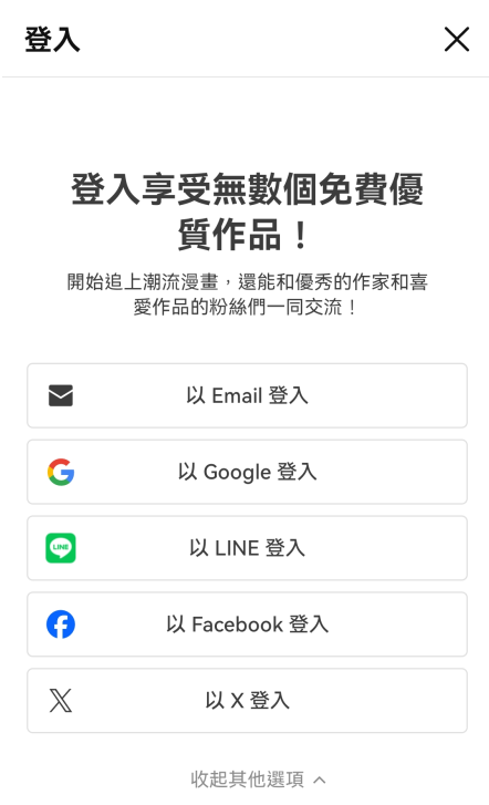 7、返回到Webtoon软件进行登录,输入邮箱和密码,点击【登入】。
