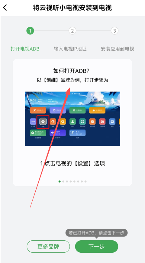 3、需要打开电视中的ADB,大家可以按照显示的教程进行操作。