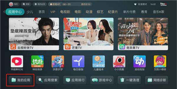 1、以海信电视为例,在本站下载野草助手TV版apk官方最新版后,将安装包复制到U盘中。打开电视,在【应用中心】tab中点击【我的应用】。