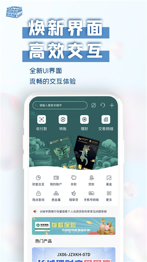 1、账户资产信息,一目了然 可视化的财富总览、卡片式账户展现、关联操作场景设计。 2、便捷关联操作,极致体验 追求人性化极致操作功能,设计关联场景操作,用户可迅速无缝切换。 3、特色个性功能,个人定制 专设“最爱”版块,用户可自主选择,以聚会为场景接入,开发转账雷达功能。 4、专属理财购买,强大专业 手机专享理财系列,多样的品种选择,满足客户投资理财需求。软件亮点