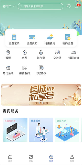 3、在生活模块中,用户可以进行水费、燃气费、缴税以及交社保等操作。