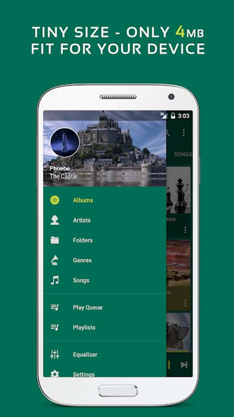 1、通过专辑,艺术家,文件夹和流派等分类管理和播放音乐 2、自动下载和显示专辑封面和艺术家图片 3、轻量级,应用体积仅有2.5M 4、智能播放列表,包含最多播放,最近播放,最近添加等 5、快速搜索专辑,艺术家和歌曲应用亮点