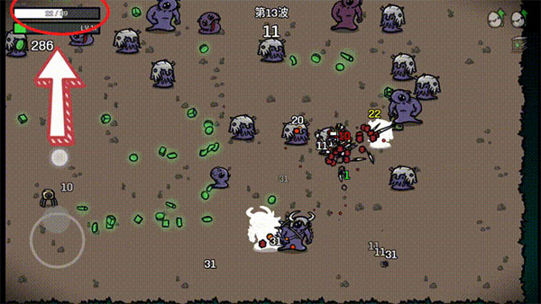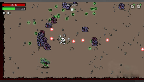 前景提要:在这款游戏中,击败怪物后会掉落绿色的豆子,当角色拾取豆子后会增加经验和货币(可用关卡结束后购买道具),而那些未及时拾取的豆子将会存入储物囊中,下局再次拾取豆子时会以2x奖励等量存入背包。所以这款游戏不提倡挂机流玩法,保持移动还是主基调。