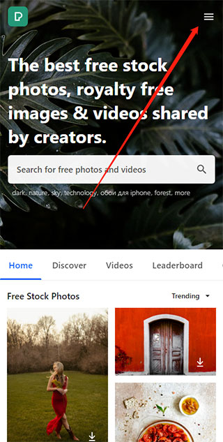 1、进入pexels免费素材网软件,点击右上角菜单栏