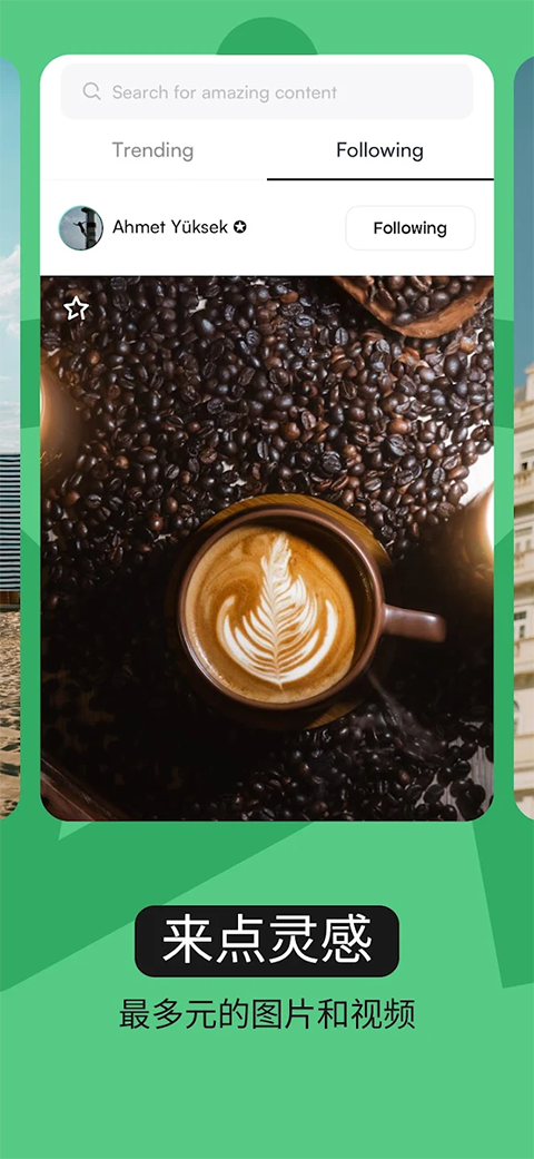 1、丰富多彩的免费图片和视频 由算法提供支持,由我们的团队精选,你的每次搜索都能找到富有包容性、多元化的真实摄影作品。 我们不断改进搜索结果和库,如果你发现我们有所遗漏,请告诉我们,我们会改正。 2、每日灵感来源 每天都有全新的图片和视频上线,浏览最受欢迎的图片或精选收藏,帮你找到灵感。 3、Pexels 适合每个人 拿起你的手机或相机,加入我们吧。上传你的图片,吸引数百万人,看看你的作品带来的积极影响。你的图片得到浏览和下载,让你体验成功的喜悦,而且你还会看到,从大出版社到知名的非营利组织,全世界都有人使用你的图片。 另外,你还可以与 Pexels 的全球摄影作者社区建立联系,帮助你提升技能,汲取灵感。 4、回馈艺术家 下载之后,你可以向为 Pexels 做出贡献的摄影作者表达支持:你可以通过 PayPal 捐款,也可以在社交媒体上表达谢意。 5、创建集合 使用收藏工具整理和分享你喜爱的图片和视频。只要拥有 Pexels 帐户,你可以将你的作品保存在移动和桌面设备上。pexels免费素材网怎么设置中文