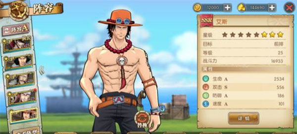 一、路飞 1、路飞是草帽海盗团的船长,是橡皮之果能力者。他全身都能自由伸长,由此发挥出了各种无人能模仿的绝招,拥有令人惊异的战斗能力。“我是要成为海盗王的男人!”路飞怀揣着成为海盗王的夙愿奔向海洋,他那豪迈又自由的生活方式源自于对伟大梦想的期待。 2、力量强悍的能力者,攻守兼备。 3、拥有橡皮果实能力,反弹伤害,抵抗雷电。 4、对单个目标伤害极高,可打破敌方阵型。