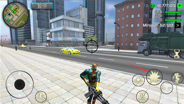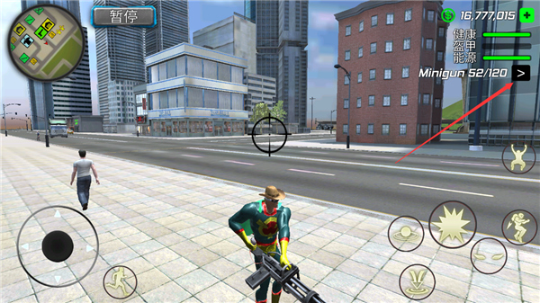 12、切换武器移动屏幕瞄准物体或者是汽车进行攻击,破坏公共场合会有警察来抓捕你;