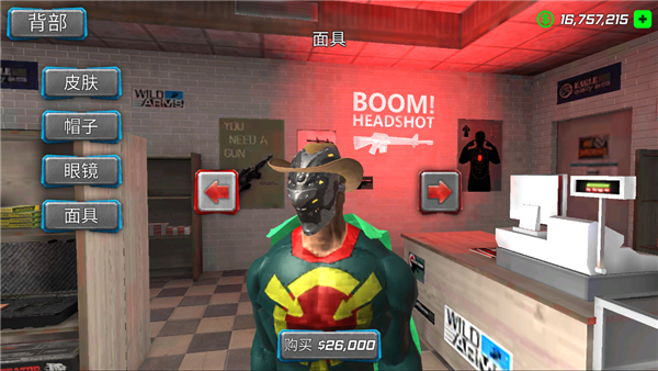 3、在字符选项中,我们还可以选择不同的皮肤、帽子、眼镜、面具;