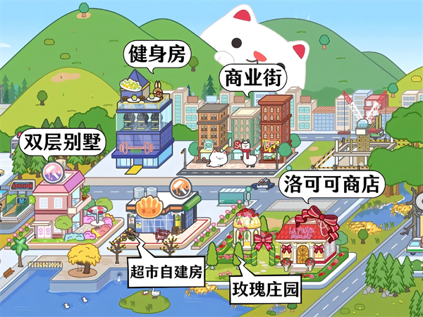6、健身房、商业街、双层别墅、洛可可商店、玫瑰庄园、超市自建房。