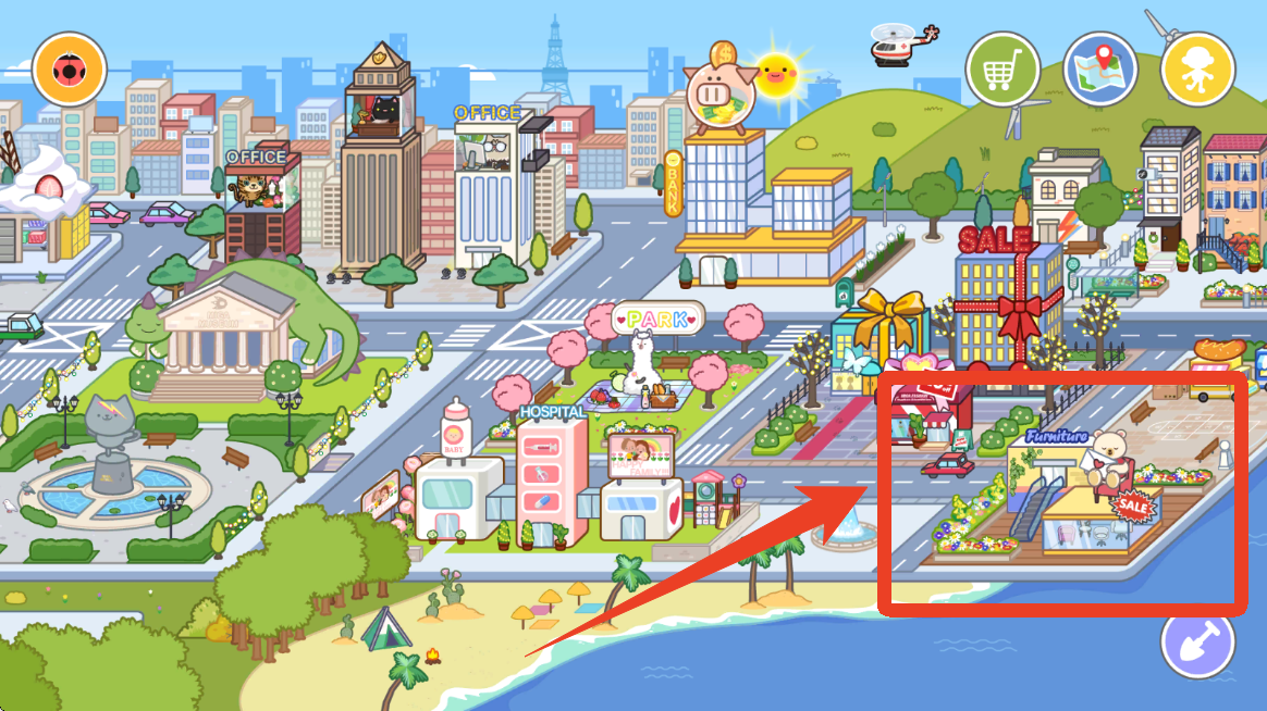 1、我们前往这个地区,点击右下方的家具饰品店。