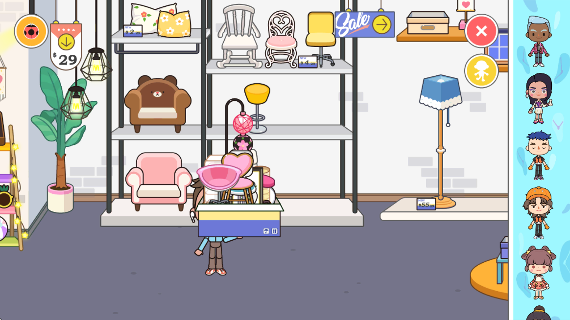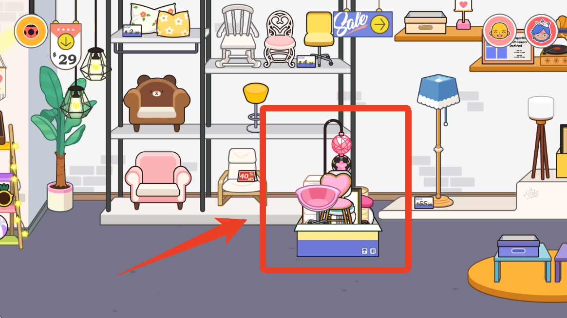 3、选择好之后就可以开始逛家具店啦,把你喜欢的东西放进这个纸箱里。