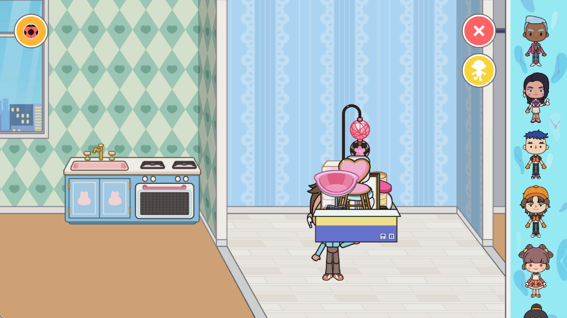 6、之后我们回到自己的房间,将拿着箱子的角色拖到室内,就可以开始放置纸箱中的家具啦。