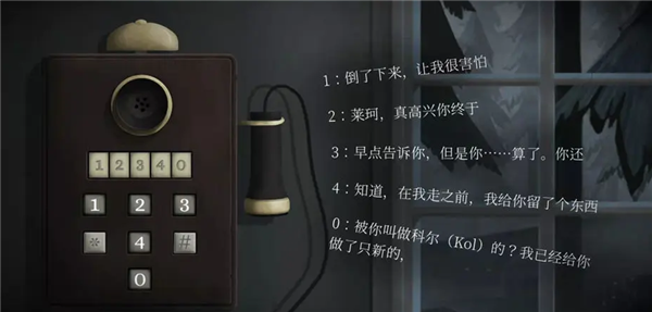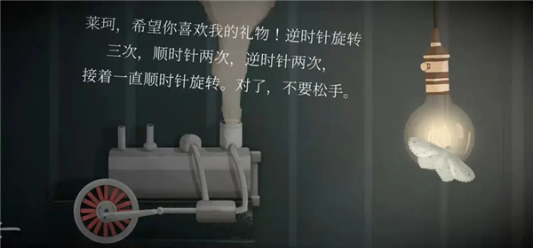 22、第三章时间来到1937年,第一个场景变了,所以我们不需要去看时间,注意:不要随意点击灯泡!!!来到钟表店,虽然是关灯状态,但是我们在第二章有了钥匙,可以随意进出。这次玩家一和玩家二的场景一致,进入钟表店后向下滑动,看到一台发电机,左侧的显示屏旁边有九个按键,游戏将它们从1~9依次编号,无论如何变换位置,1~9的位置是不变的,所以当它每次转动后,每次的1都不是一个按键。右侧开始后,玩家一率先有提示,之后便是玩家二有提示,一共18次,每人9次。