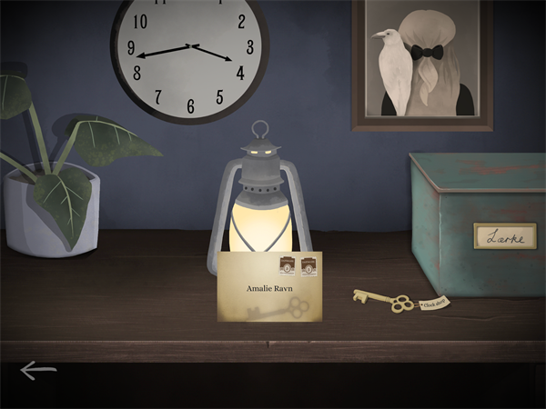 17、向左滑动,邮局现在是没有用的,需要我们先去雷文钟表店。按照惯例,三点开门。玩家一:得知需要在打烊之后在进入。玩家二:拿走桌子上的信和钥匙。可以看到信已经封好,贴好邮票,可以寄给玩家一。
