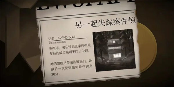 10、玩家一和玩家二都可以看见收音机,调频,相互沟通,先是玩家一后为玩家二,得知线索。玩家一:得知现在是三月。玩家二:得知雷文钟表店今天也就是18号,开业。向上滑动,看见报纸,得知今天是周三。