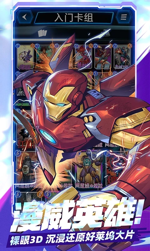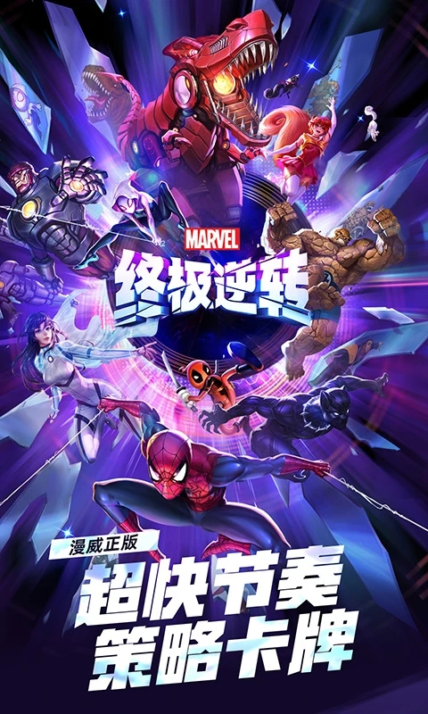 1、漫威英雄 裸眼3D沉浸还原好莱坞大片 2、超快节奏 随时随地三分钟一局对决 3、超级加倍 策略卡组运气与脑力的碰撞 4、竖版对战 单手玩转轻操作重策略漫威终极逆转手游卡牌展示