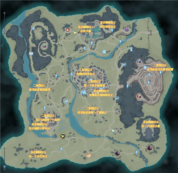 诺丁城地图的柳二龙和玉小刚的共计12个回忆信物,它们的具体位置都标在了上图中,其中玉小刚的回忆信物是一个紫色的罗三炮,体积并不算大,大家得仔细找找,想法柳二龙的回忆信物则是一条大大的火龙,普遍位于屋顶或者是烟囱上,只要在具体位置旁抬头看都能轻松的找到。