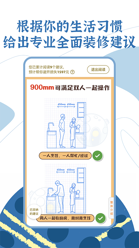 1、个性化设计灵感推荐 提供个性化的设计灵感推荐,用户可以根据自己的喜好和需求,获取与众不同的装修方案,避免千篇一律的装修风格。 2、智能装修笔记本 建立专属的装修笔记本,记录灵感、收集素材、规划设计,方便随时查阅和修改,保证装修过程中不漏掉任何细节。 3、DIY科学装修工具 应用提供方便实用的装修工具和科学的设计建议,用户可以自主规划、DIY装修,让家装成自己心中的理想模样。 4、全方位的设计需求考虑 月球理想家App帮助用户梳理衣食住行、爱好娱乐等各方面的设计需求,确保装修方案贴合用户生活习惯和个性化需求。应用功能