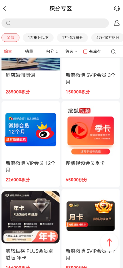 4、还可以根据自己的积分数量进行筛选,兑换各大平台的会员季卡或者年卡。