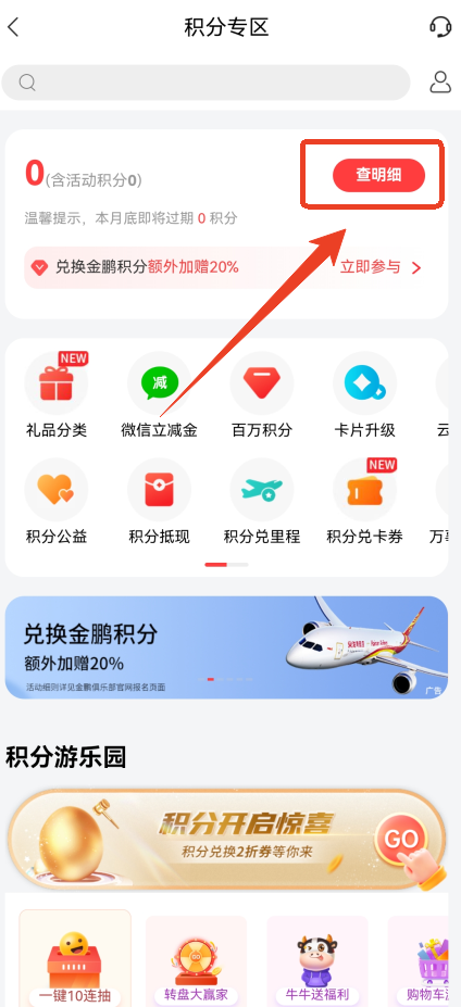 3、下滑可以看到积分有很多种使用方式,比如兑换里程、兑换卡券、抓娃娃、抵现、卡片升级等用途。