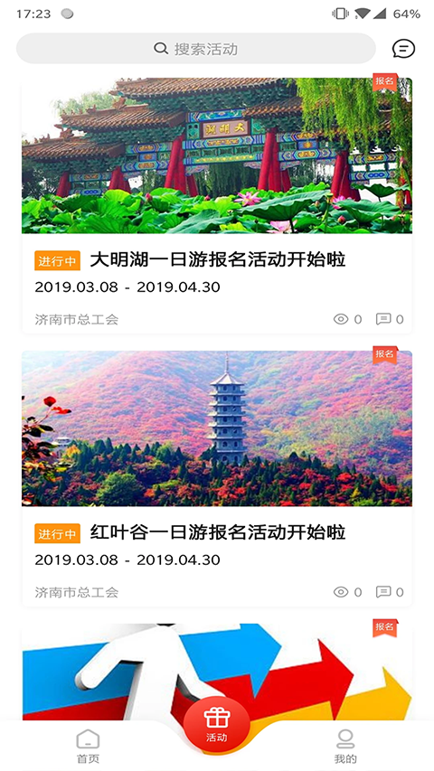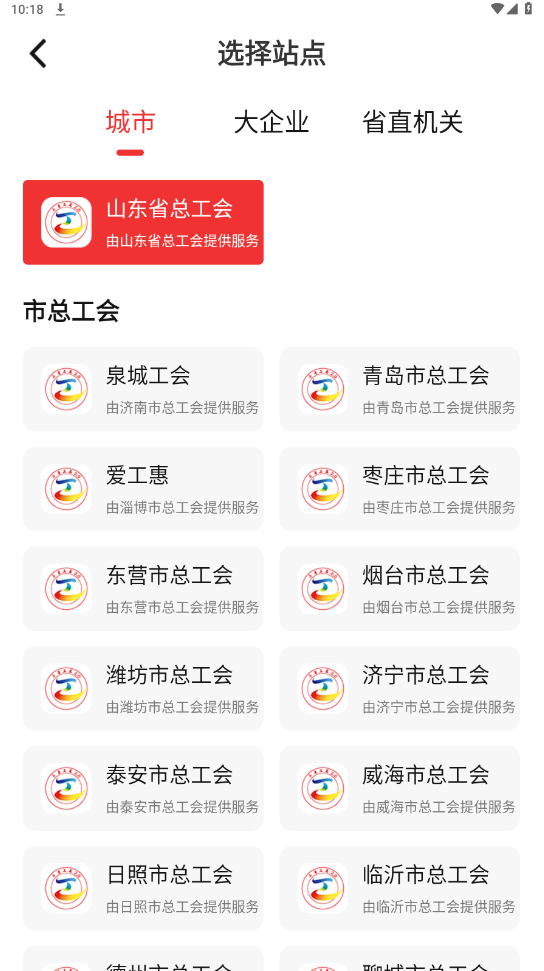 1、打开“齐鲁工惠”APP,在首页轮播图上方切换到所在市总工会