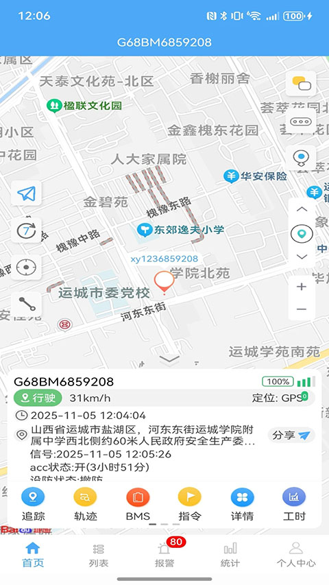 2、注册登录后您可以对您刚注册的设备进行车辆管理、设防,下发指令到设备等操作。