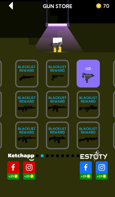 1、超简单的控制方式 枪械自动移动,点击即可确定射击方向。 2、多种多样的枪械 超过80把著名的枪支可以收集和使用; 3、游戏过程解压上头 玩家通过击败敌人,可以体验到一枪爆头的快感,既解压又上头更新日志