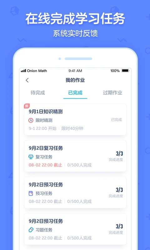 1、看视频学习:随时随地学习微课知识。 2、做练习:老师发布的练习内容一目了然。 3、去改错:系统自动根据学习情况判断知识点漏洞,改错学习有的放矢。 4、账号打通:洋葱学园合作校版app账号也可用于登录洋葱学园app,不怕账号记错啦。洋葱学园合作校版与洋葱学园的区别
