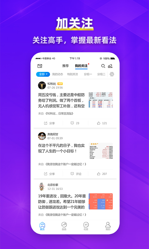 1、自选股:定制赚钱的股票。 2、好友动态:锁定赚钱的股票高手。 3、信息提示-私信:股票公告新闻研究报告及时提示。 4、搜索:热门股票、股票高手、股票公告新闻研报全文搜索。 5、淘股吧:炒股牛人云集,职业投资者大本营。软件亮点