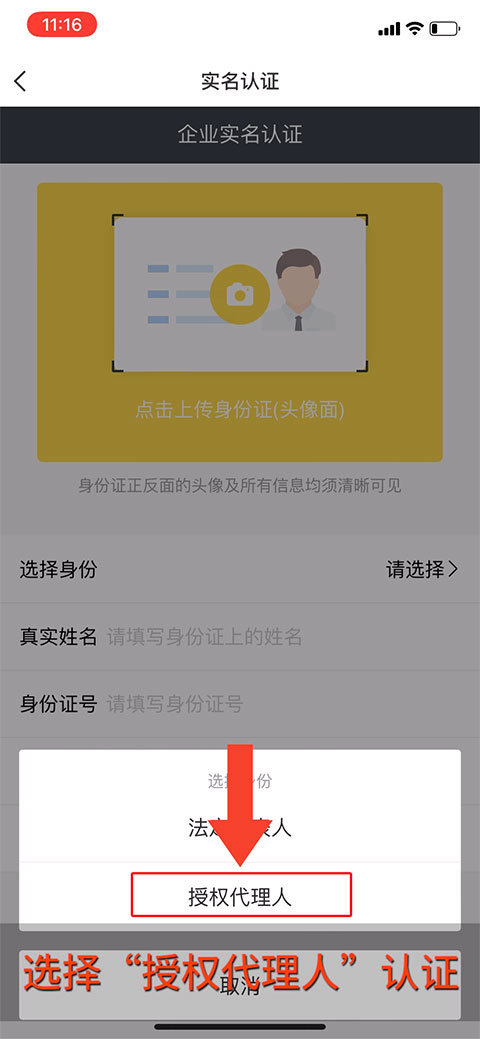 5、上传清晰的“授权代理人”身份证。