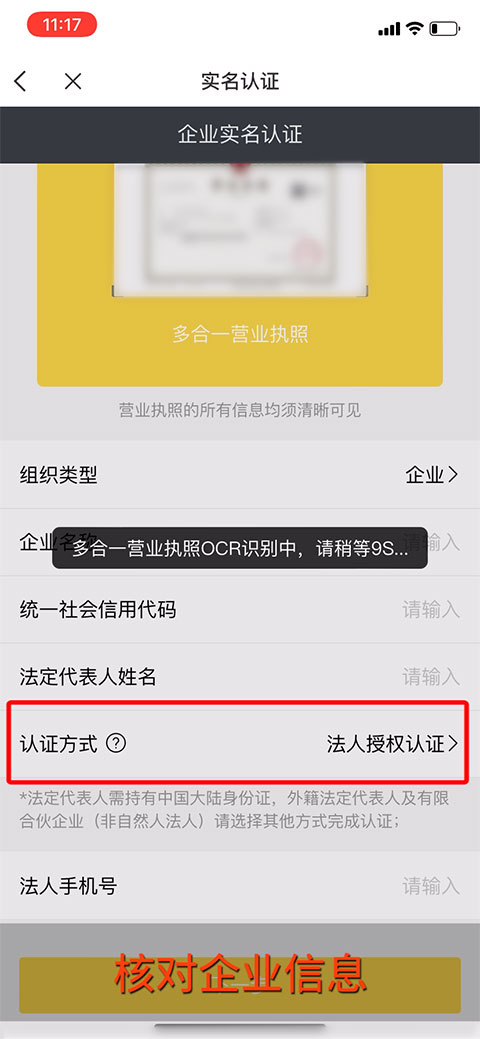 10、核对企业信息。