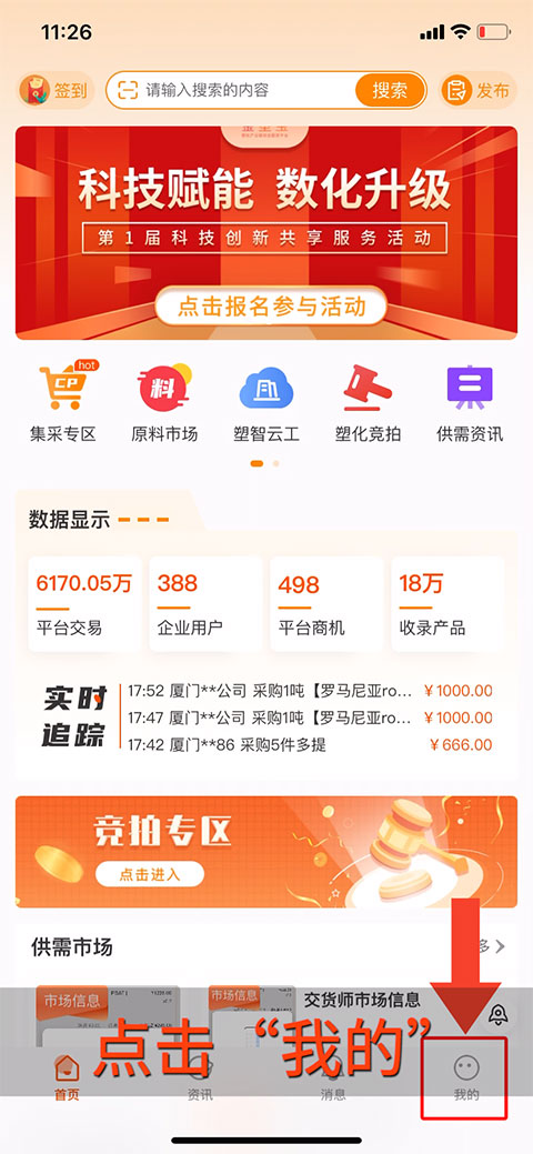 1、打开金塑宝APP点击“我的”。