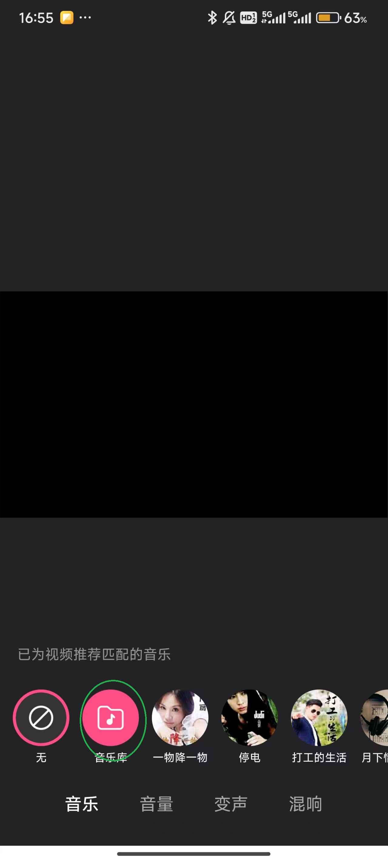 6、如果觉得视频单调,可以点击屏幕右上角的“音乐”来给视频增加音乐。