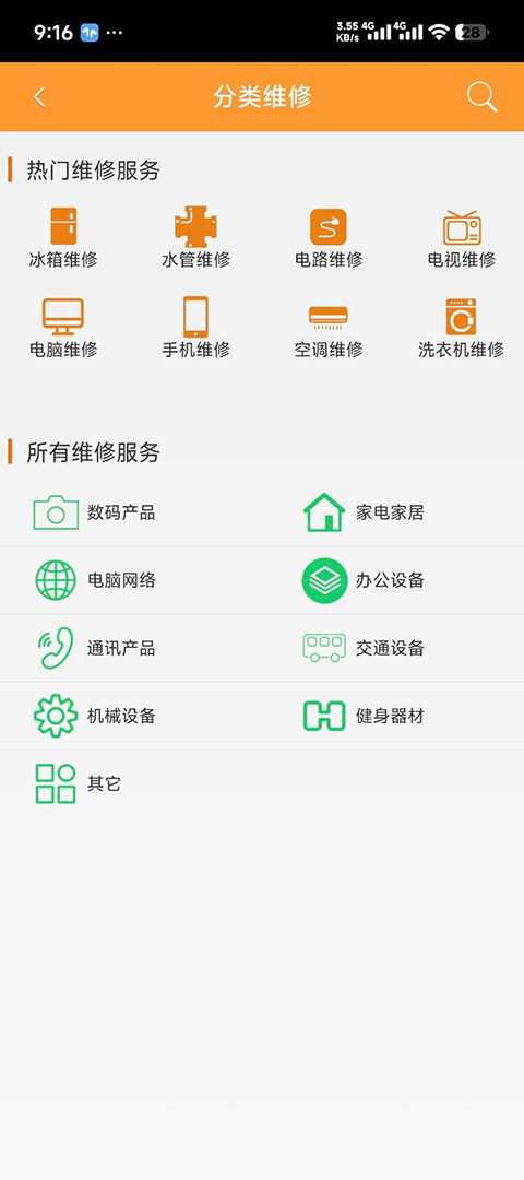 1、家具维修:沙发维修,木门维修,餐桌维修,睡床维修等。 2、家电清洗:饮水机清洗,油烟机清洗,空调清洗,电磁炉清洗,电脑清洗,电视清洗。 3、办公设备维修:打印机维修,复印机维修,传真机维修,投影机维修,扫描仪维修,安防监控维修,门禁考勤机维修,办公家私维修,办公维修配件。 4、电脑网络维修:电脑维修,笔记本维修,平板电脑维修,网络设备维修,维护外包,数据服务,网络安全,电脑维修配件。 5、家电维修:电视机维修,洗衣机维修,冰箱维修,空调维修,电烤箱维修,吸油烟机维修,策波炉维修,燃气灶维修,热水器维修,加湿器维修,电磁炉维修,榨汁机维修,豆浆机维修,消毒柜维修,家电维修,厨卫用具维修,家居用品维修,表维修,家电维修配件。 6、数码产品维修:数码相机维修,数码摄影维修,数码冲印设备维修,数码维修配件。 7、通讯产品维修:手机维修,程控交换机维修,对讲机维修,集团电话维修,手机美容,通讯产品配件。 8、交通设备维修:汽车维修,汽车美容,摩托车维修,电动自动行维修,交通设备维修配件。 9、机械设备维修:机电安装,变频器维修,工业机械维修,工程机械维修,农用机械维修,机械设备维修配件。 10、美容健身器材维修:美容设备维修,健身器维修,美容健身器材维修配件。软件亮点