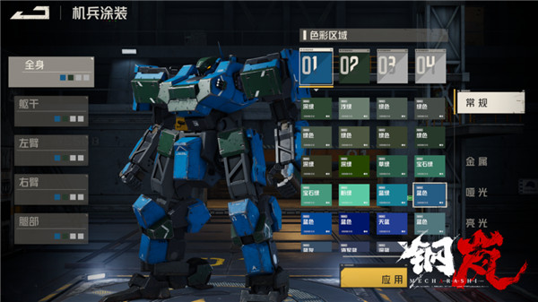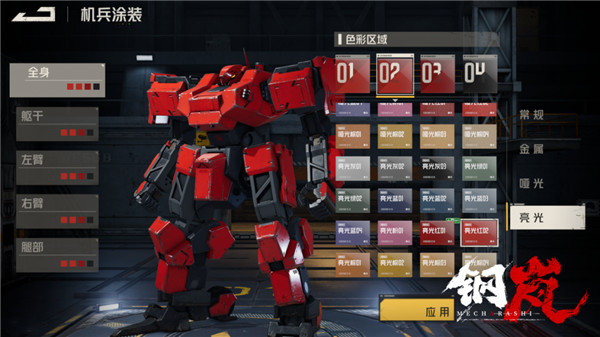 1、游戏中玩家将跟随化名为「猎豹物流」的雇佣兵小队,与世界上的各方势力周旋,并且与神秘的「昙」少女组织一起揭开背后的阴谋诡计。 2、将战棋玩法与机兵题材相结合,玩家在体验作为指挥官指挥战斗的同时,还可以通过自定义机兵的头部、双手、双腿及其武器,提供给玩家战场决策,战前机兵Build搭配等多角度的策略选择。 3、《钢岚》由BlackJack Studio进行开发工作,游戏计划将在包含移动端在内的全球多平台发行。钢岚手游机甲涂装攻略