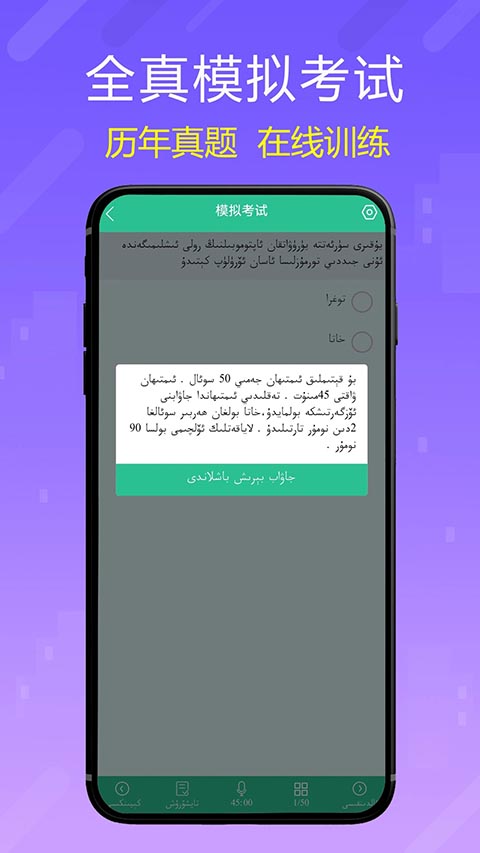 1、语音极速版:技巧讲解、归纳帮助学员速记,轻松通过考试 2、人工读题、自动播题 3、维吾尔语答案解析更新日志