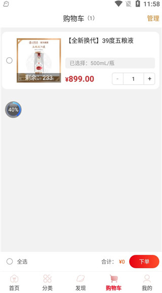 5、进入购物车页面 ,大家可以将自己喜欢的酒添加到购物车里。
