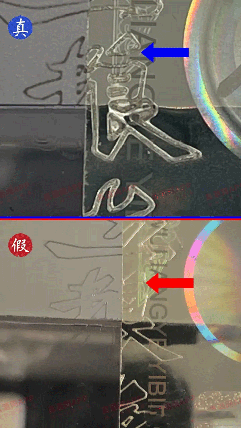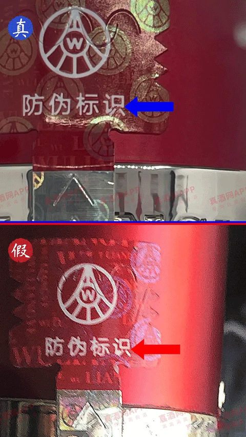 假:如果防伪标“识”字下面没有凸出来,基本可以确定是假的;