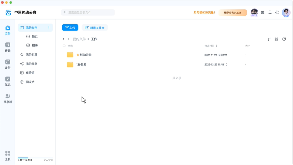 中国移动云盘Mac版是中国移动推出的云存储服务,用于存储、分享和备份用户的数据和文件,用户可以根据需要选择不同大小的存储空间套餐,以存储照片、视频、文档等各种文件,随时通过移动设备或计算机将文件上传到云盘,并随时随地访问和同步这些文件。除此之外,中国移动云盘用户可以生成共享链接,轻松与他人分享文件,还可以设置分享权限,确保文件安全性。而且一些视频和图片还能够在线浏览或者分享给好友,有需要的用户不要错过哦。
