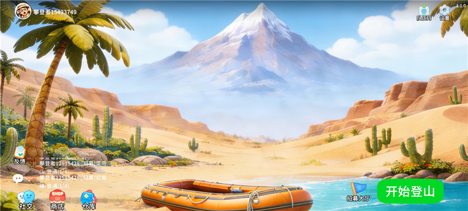 1、协作攀爬核心 通过真实物理抓握、共享绳索与工具完成攀爬。 2、合作体验 体力耗尽时,是队友的援手带来温暖,每一次为陌生人搭起人梯,或是分享食物,都是跨越陌生的温暖相遇。 3、多样化地形 攀登火山、冰崖等奇幻山峰,每种环境有独特挑战与危险。 4、高自由度路线 可选择不同攀爬路径,鼓励创造性解决地形难题。更新日志