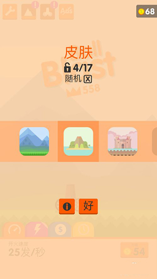 1、在游戏中消灭小球会获得金币,金币达到一定的数量就可以升级开火的速度,这里以每秒几发子弹来计算的,级别越高,开火的速度就越快,在游戏中更是容易快速消灭小球。