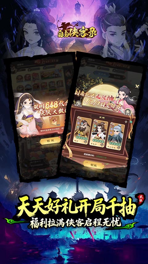 1、无尽抽卡,英雄随心选择 游戏内送出的无限抽卡机会,让你轻松招募到各式传奇侠客,无论是声名显赫的武林盟主,还是隐居深山的神秘高手,都有机会成为你的得力助手。每一次抽卡都是一场心跳加速的冒险,每一次点击都可能带来意想不到的惊喜。在这里,无限抽卡,全民欧皇,强力阵容由你自由搭配,让你的武侠梦从这里起航! 2、实景再现,武林传奇重现 每一个场景、每一个角色、每一段故事,都经过精心设计,力求还原武侠世界的真实面貌。从江湖中的恩怨情仇到门派间的明争暗斗,从侠客的仗义行侠到门派之间的激烈博弈,每个侠客独有的技能特点都得以完美呈现。让你身临其境,感受那份只属于江湖的豪情与热血。 3、躺享便捷挂机,资源丰富等你收获 游戏内设计了挂机元素,你的角色在你离线时自动修炼,自动战斗,无需实时操作,帮你解放双手!当你再次回到游戏时,会发现角色已经积累了大量的经验和资源,战力得到了显著提升。这样的设计让你即使在忙碌的生活中,也能轻松享受游戏的乐趣,不错过任何成长的机会。 4、新服福利,七天登录送魔令狐冲 专属于新服的福利,连续七天登录,即可免费获得传说中的侠客魔令狐冲。这位侠客不仅强度爆表,更拥有独特的技能机制,将成为你在江湖中的一大助力。随着你与魔令狐冲的并肩作战,你们将共同书写一段段传奇故事,成为江湖中流传千古的佳话。自由侠客录手游阵容推荐