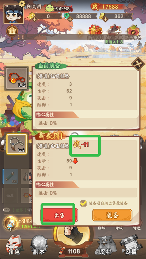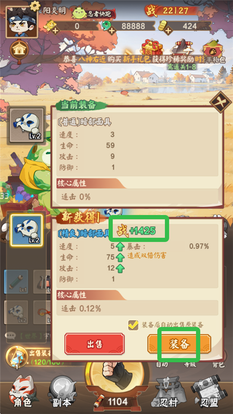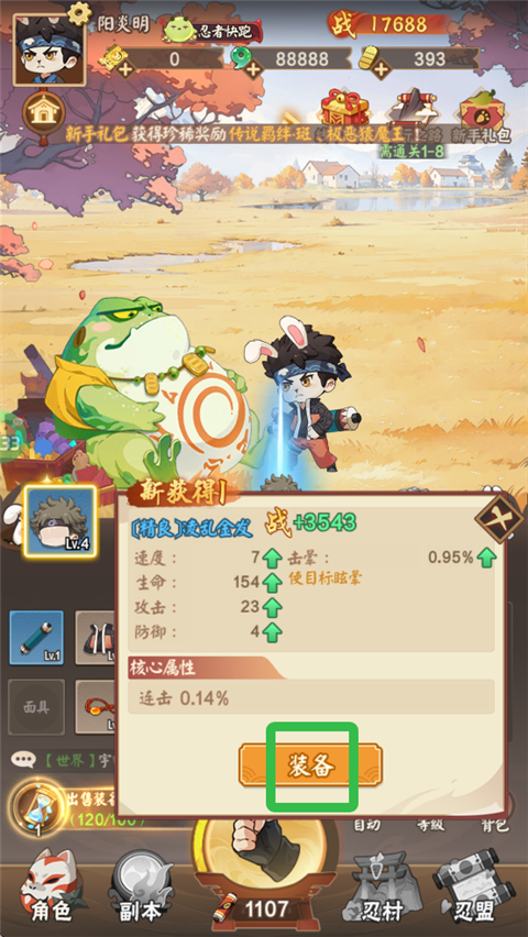 4、刷出的装备战力更高,点击【装备】进行替换原装备。