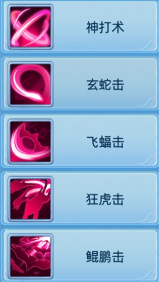 门派技能以物理输出为主,可连续单体攻击、群体输出更可对目标封印。