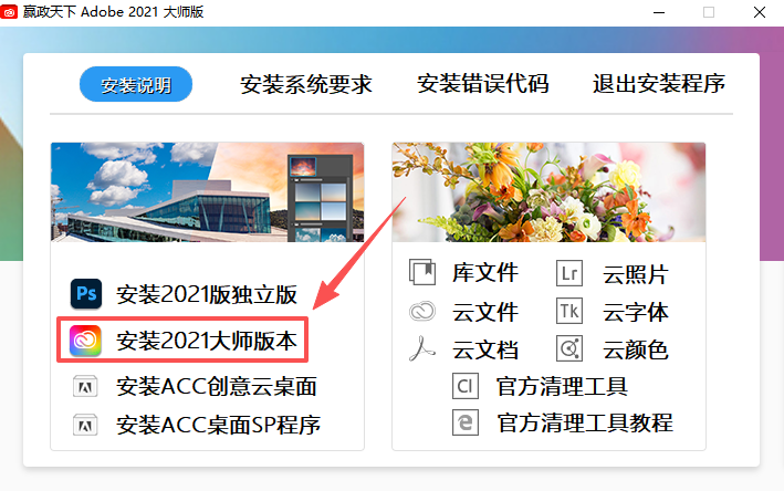 2、点击安装2021大师版。