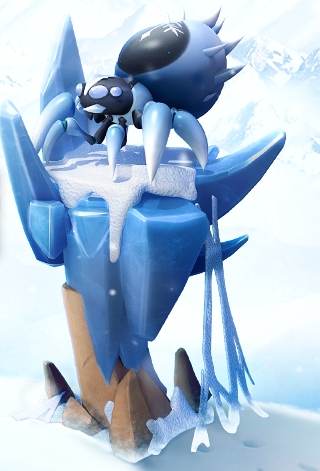 冰霜塔全身呈现出冰蓝色,宛如一座天然的冰雕,而在塔顶驻扎着近乎与冰霜塔混为一色的冰霜蜘蛛。寒冰是入侵者最大的克星!驻扎于塔顶的冰霜蜘蛛,将用冰冷而坚硬的蛛丝减速敌人,直到将其冻结。而且冰霜塔与极地巨蚁一样拥有强大的属性: