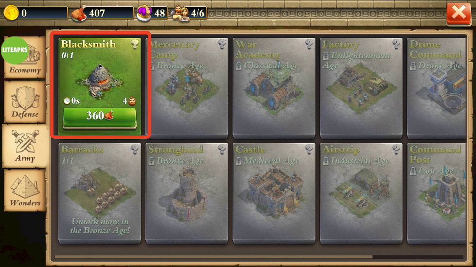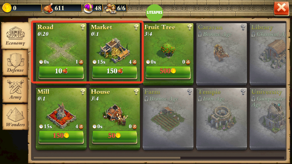 3、食物可以用来建造建筑物或者增加国防。