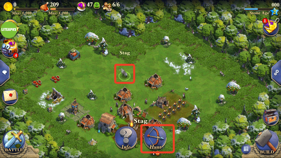 【食物来源与用途】 食物来自狩猎动物,或者袭击敌人。 1、点击地图中的小动物,选择第二个攻击。